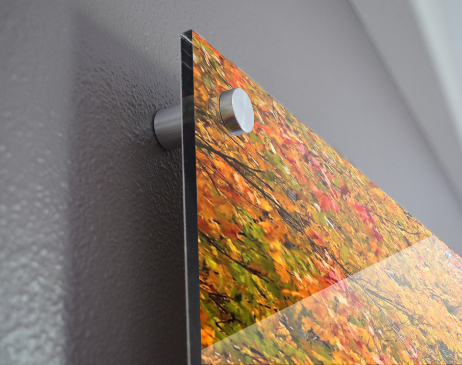 Impression sur acrylique avec entretoises ( cylindres métalliques )