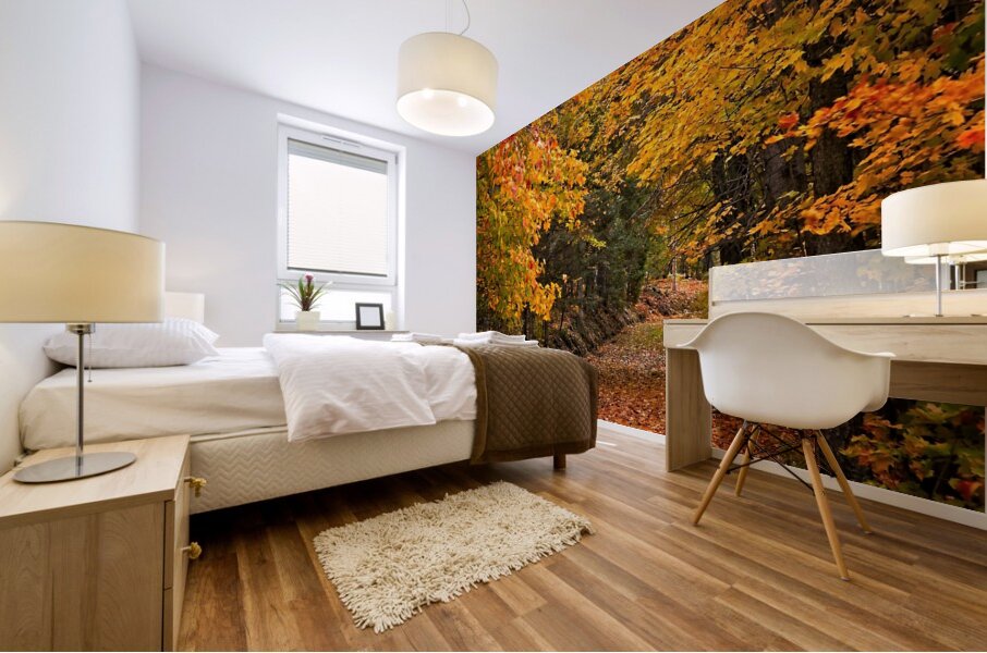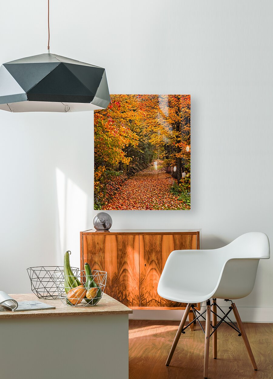 Step into the heart of fall with this glowing forest pathway, blanketed in fiery leaves and framed by vibrant golden trees. This captivating piece instantly warms up any room—perfect for creating a cozy, inviting atmosphere in entryways, living rooms, cabins, or office spaces. Add it to your wall and bring the magic of autumn indoors all year long.